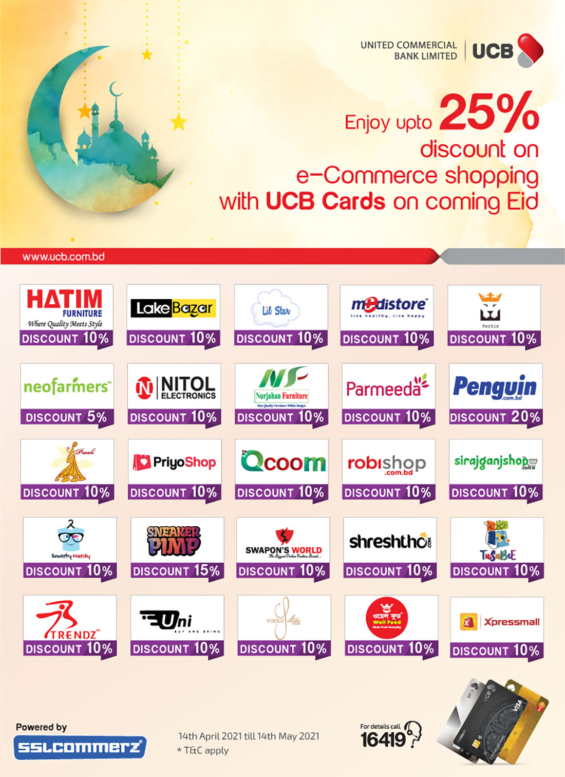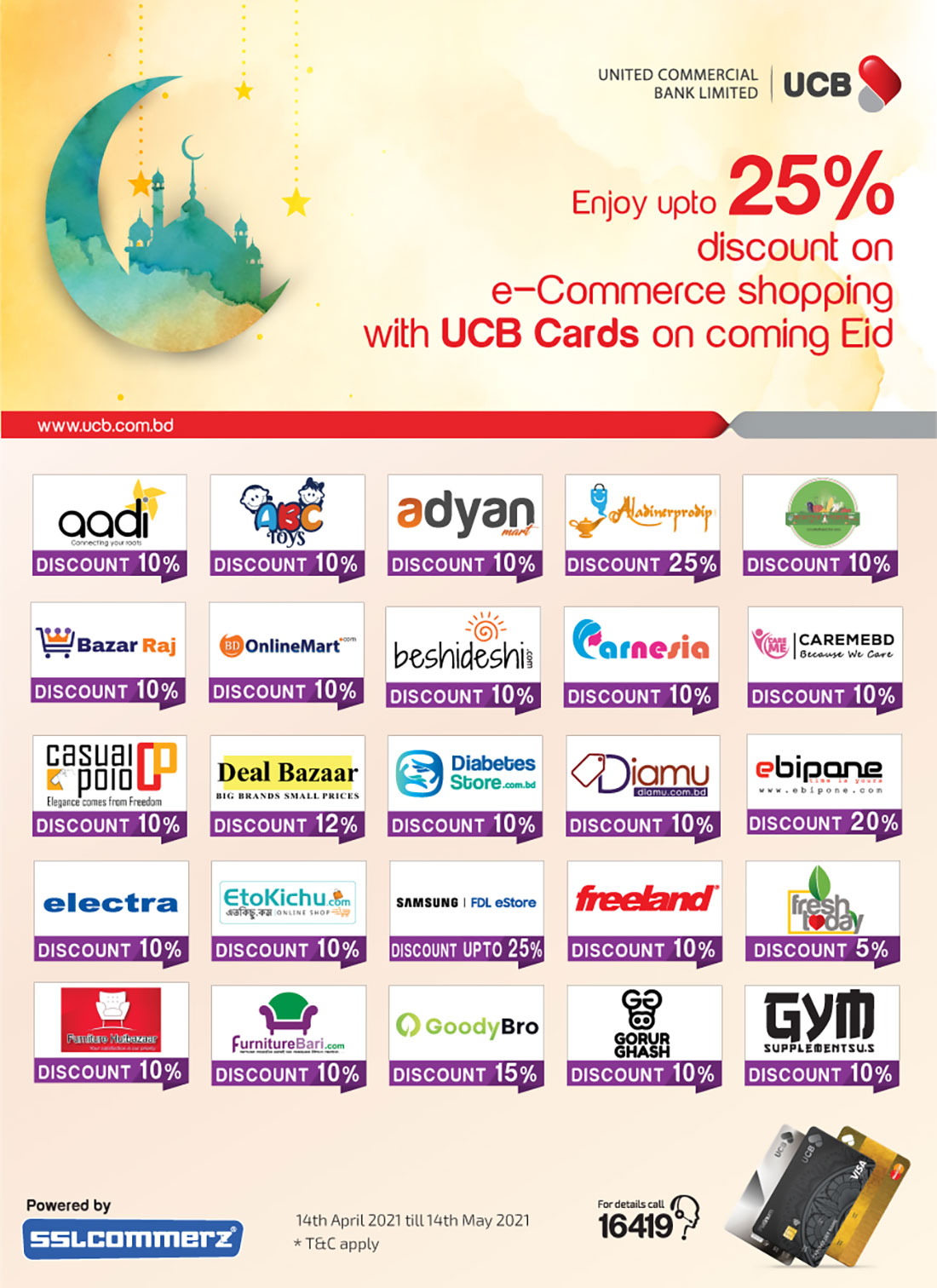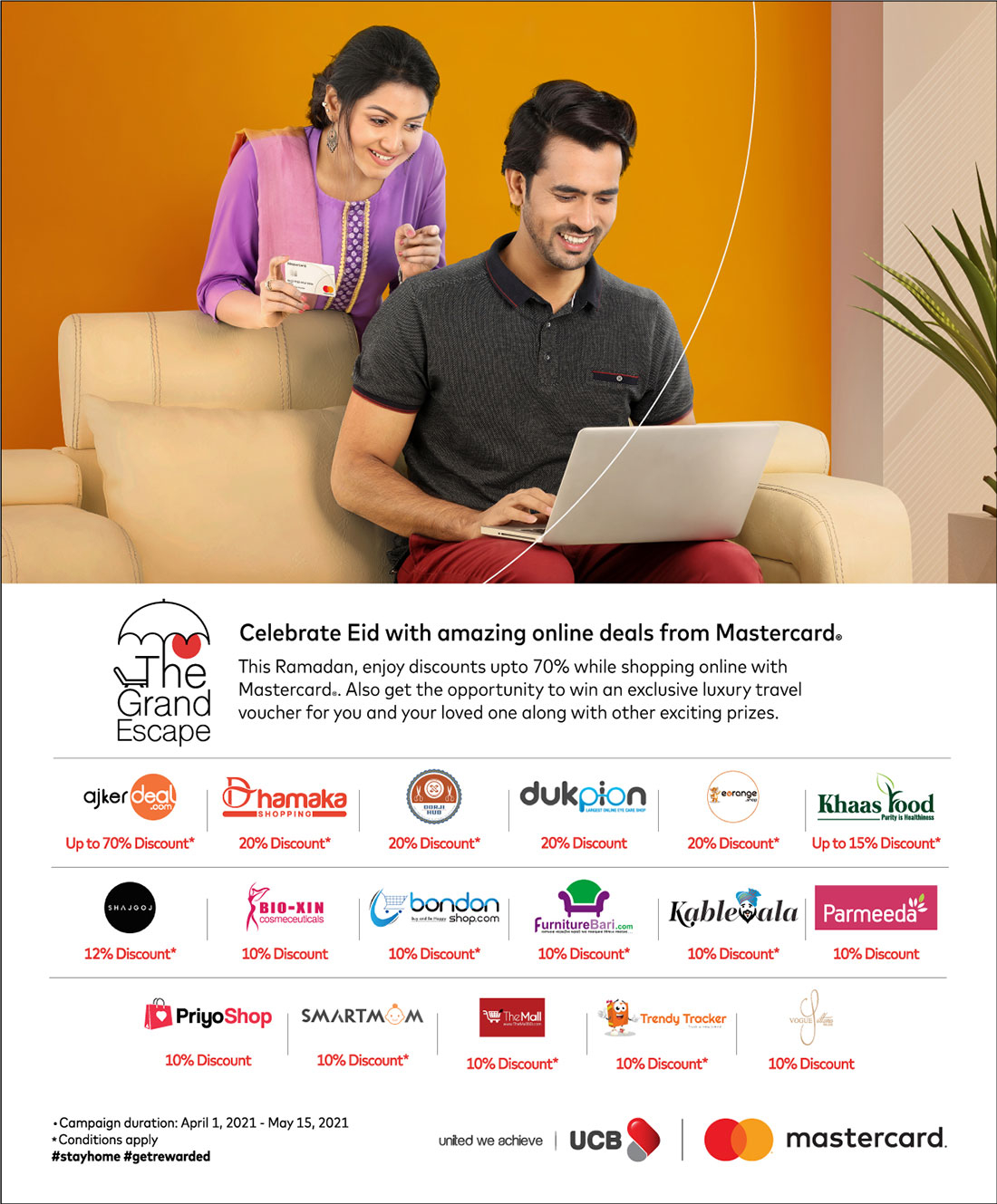 Up to 70% discount offer for online shopping with UCB Mastercard Debit / Credit Card