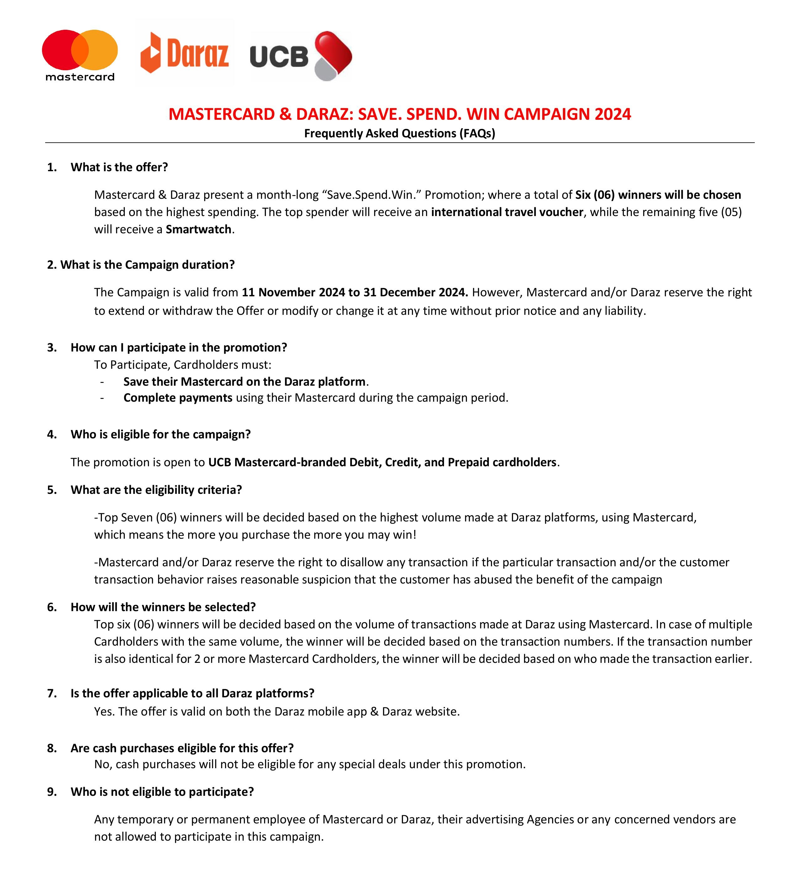 FAQ_ Mastercard & Daraz: Save. Spend. Win Campaign 2024