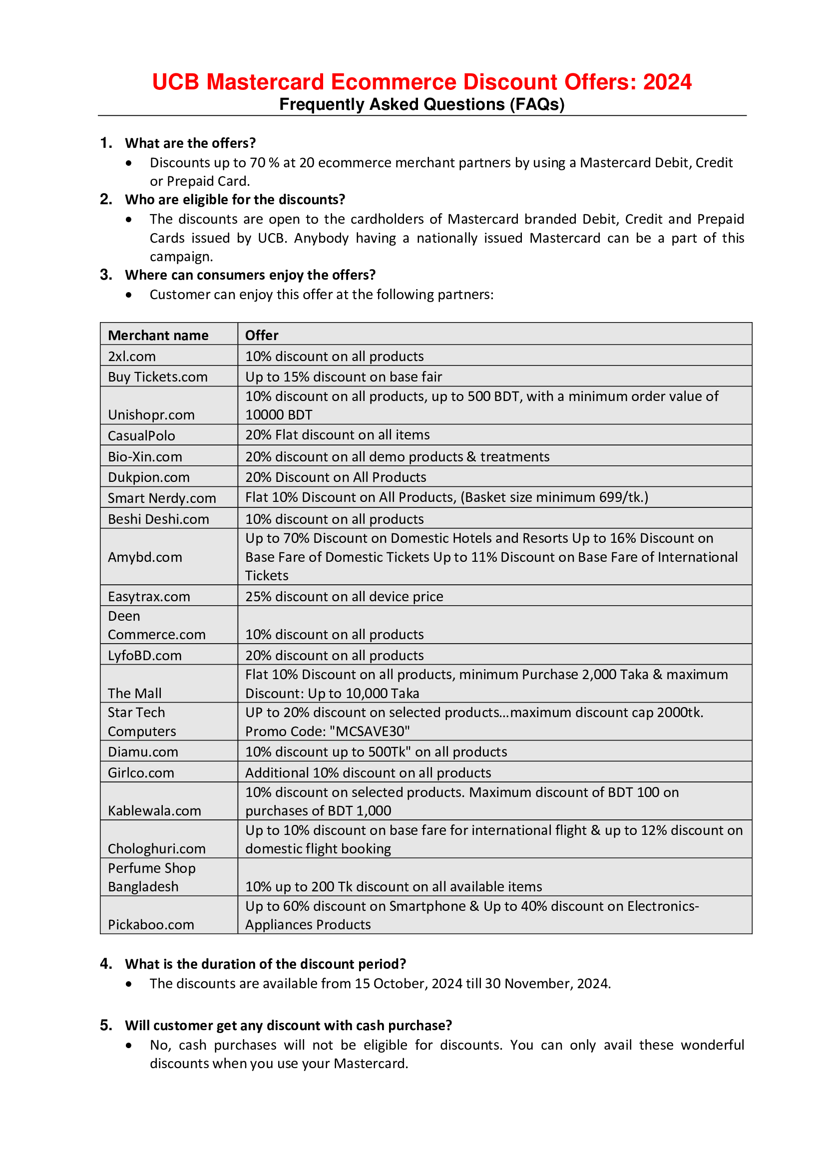 FAQ_ Discount offer at Hotels and Resorts with UCB mastercard Cards