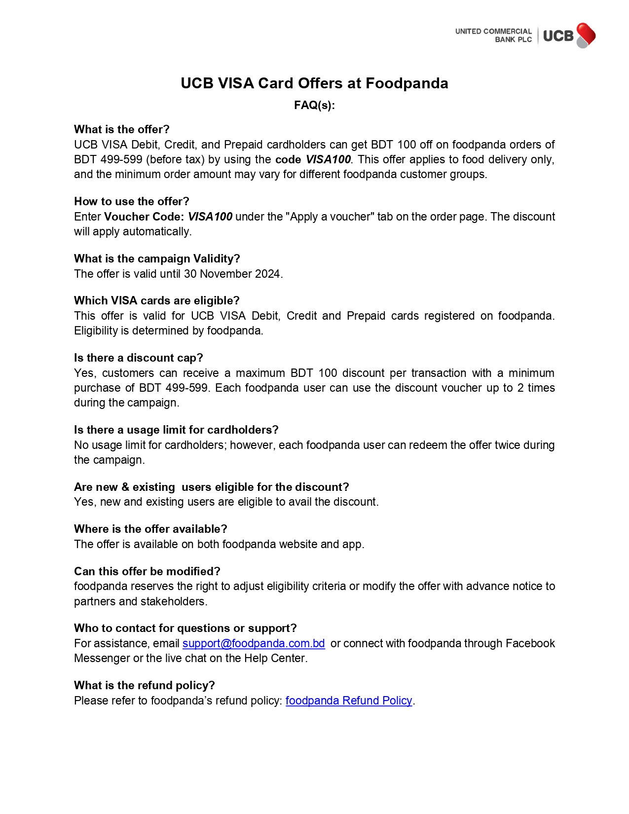 FAQ_ UCB VISA Card Offers at Foodpanda
