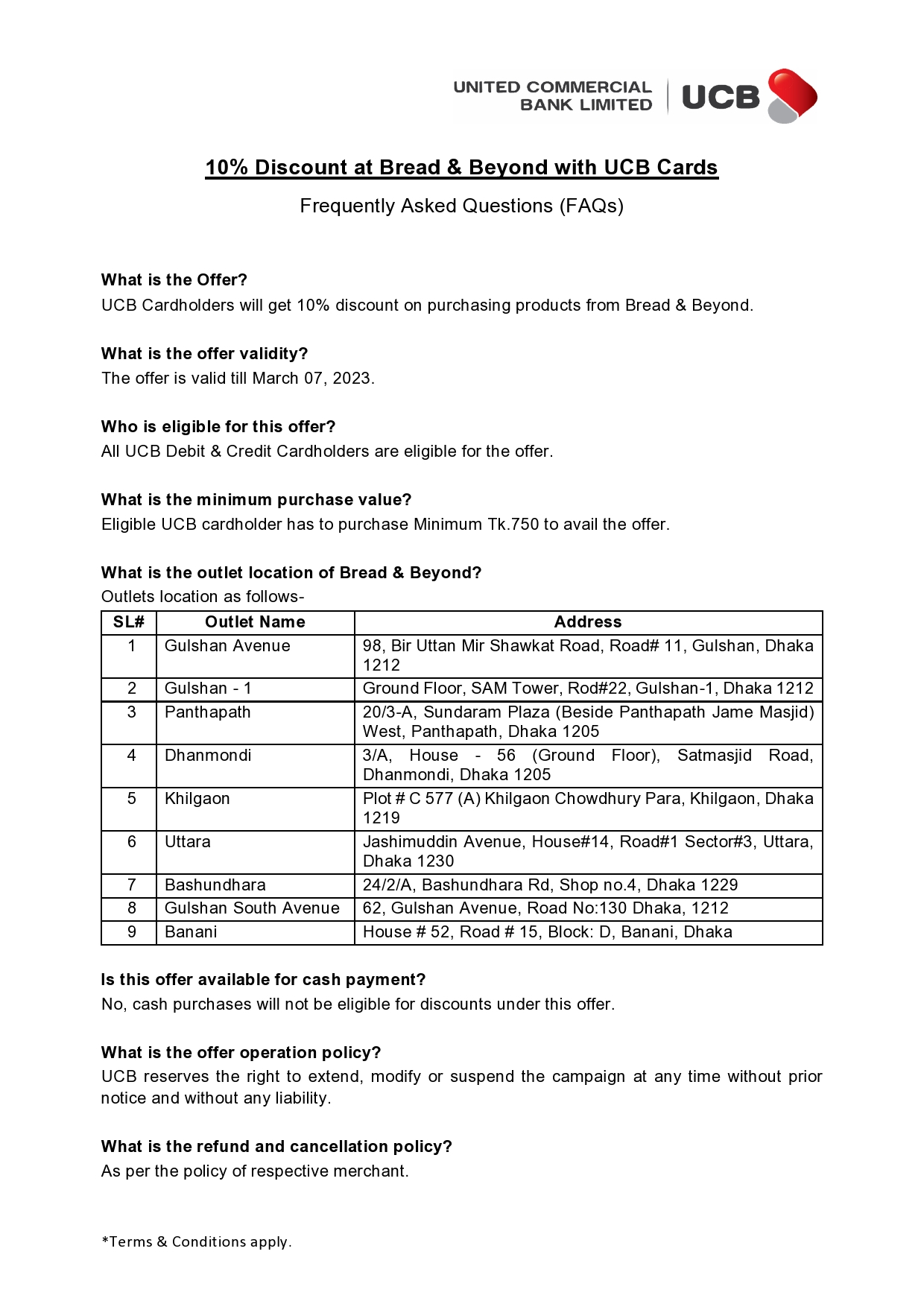 Ramadan discount partner list of UCB Cards!