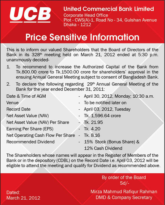 Price Sensitive Information - 28-03-12