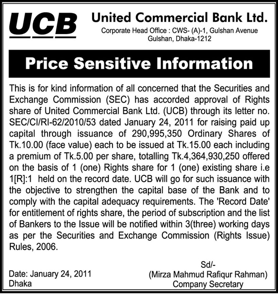 Price Sensitive about Righs issue approval of SEC - 24.01.11