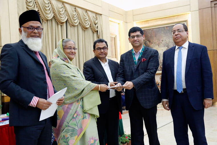 Cheque handover to Honourable Prime minister for Mujib Borsho